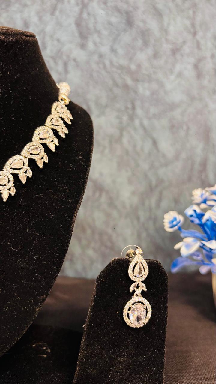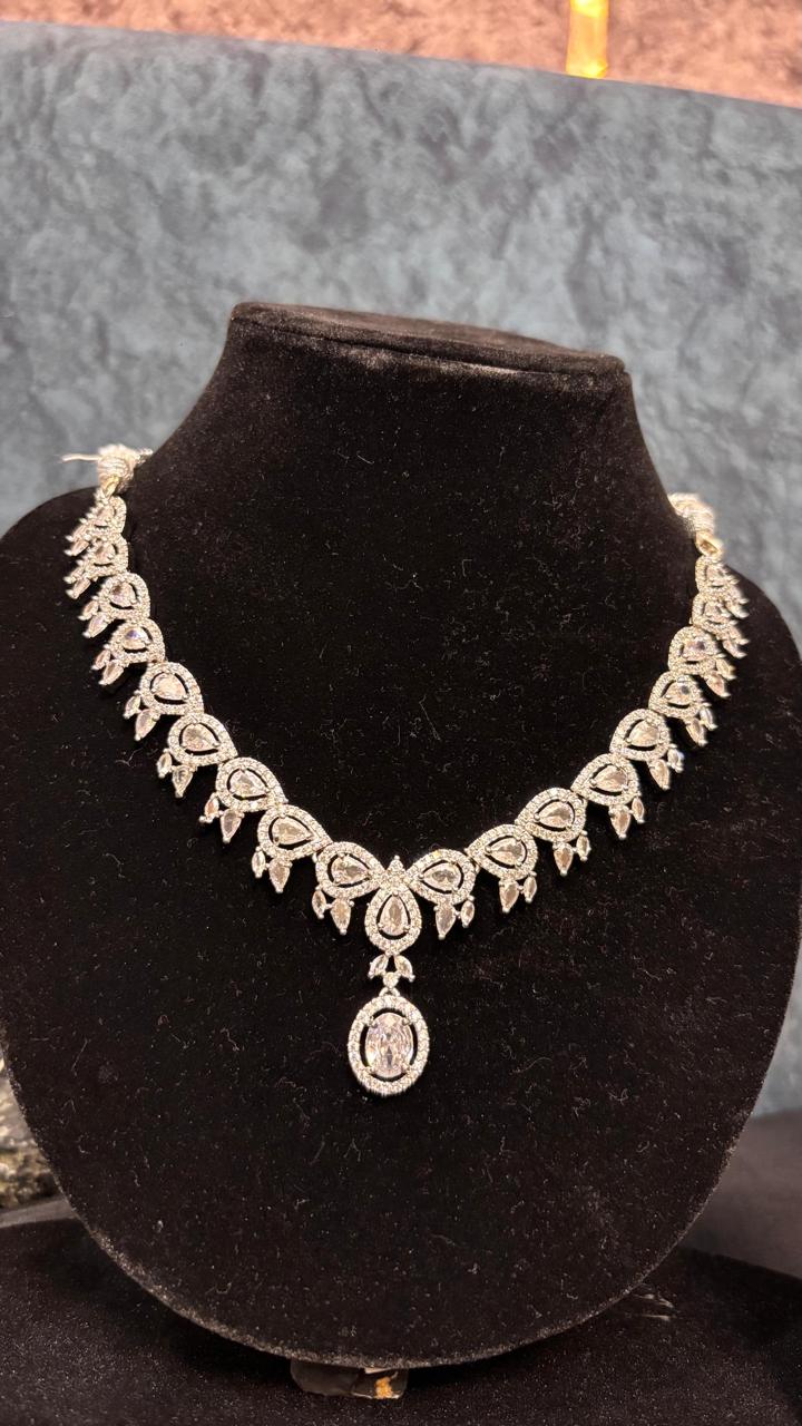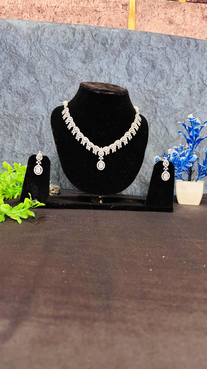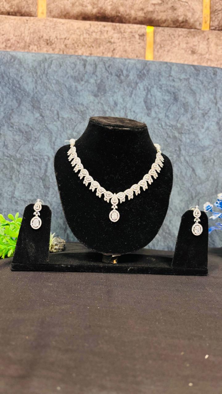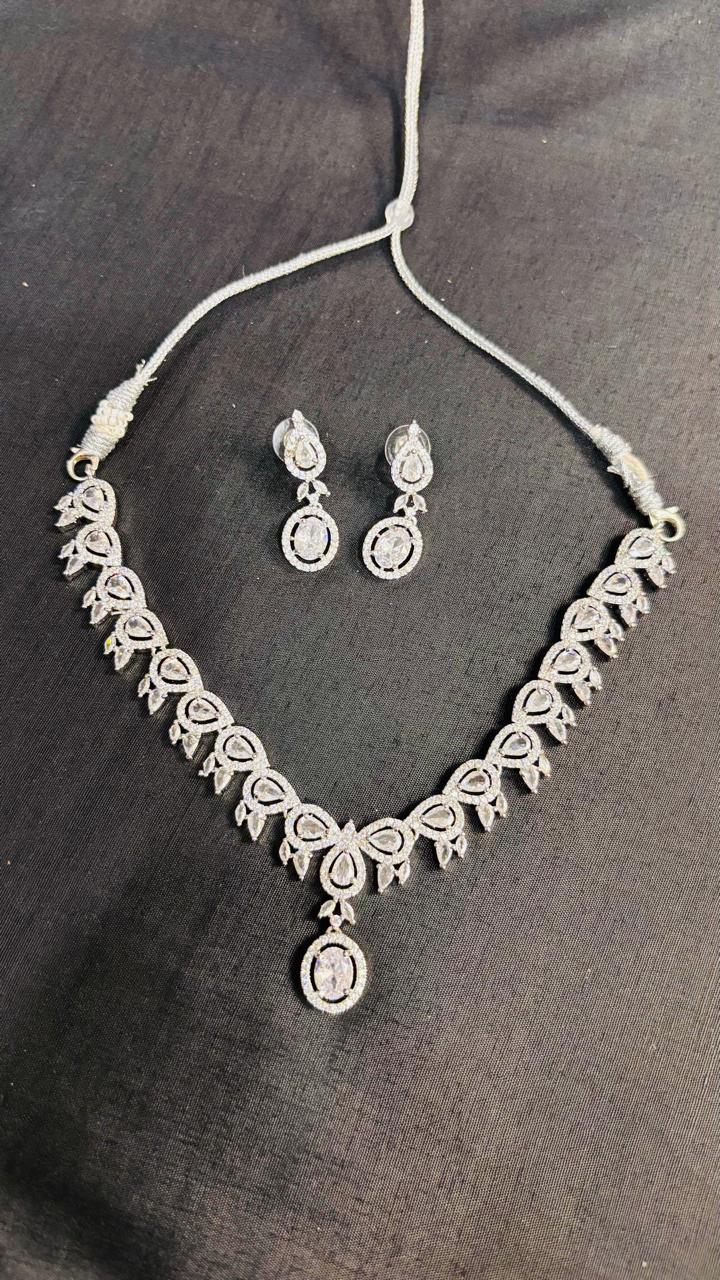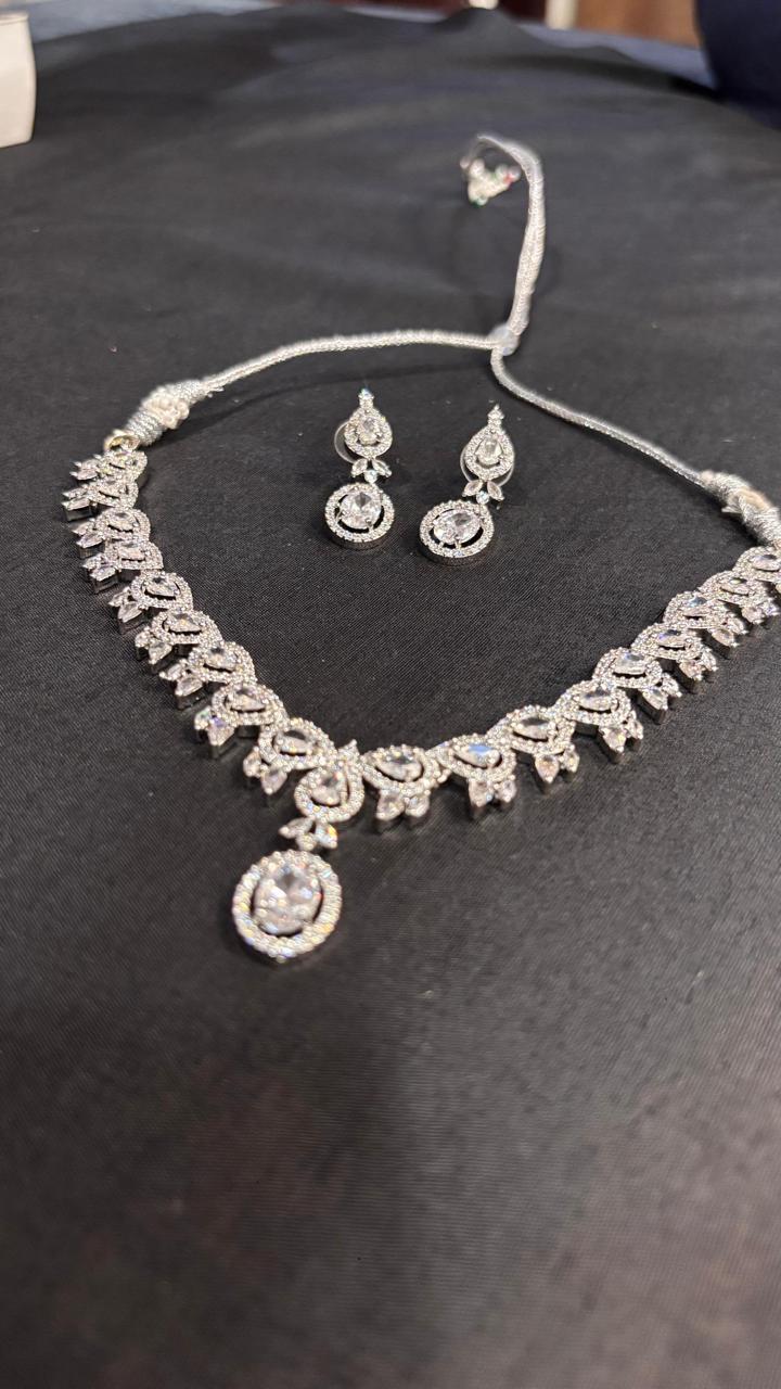 Add a touch of timeless grace to your look with this exquisite AD Silver Set. Crafted with premium quality alloy and finished in a radiant silver tone, this jewellery set is embellished with shimmering American Diamonds that create a luxurious sparkle.